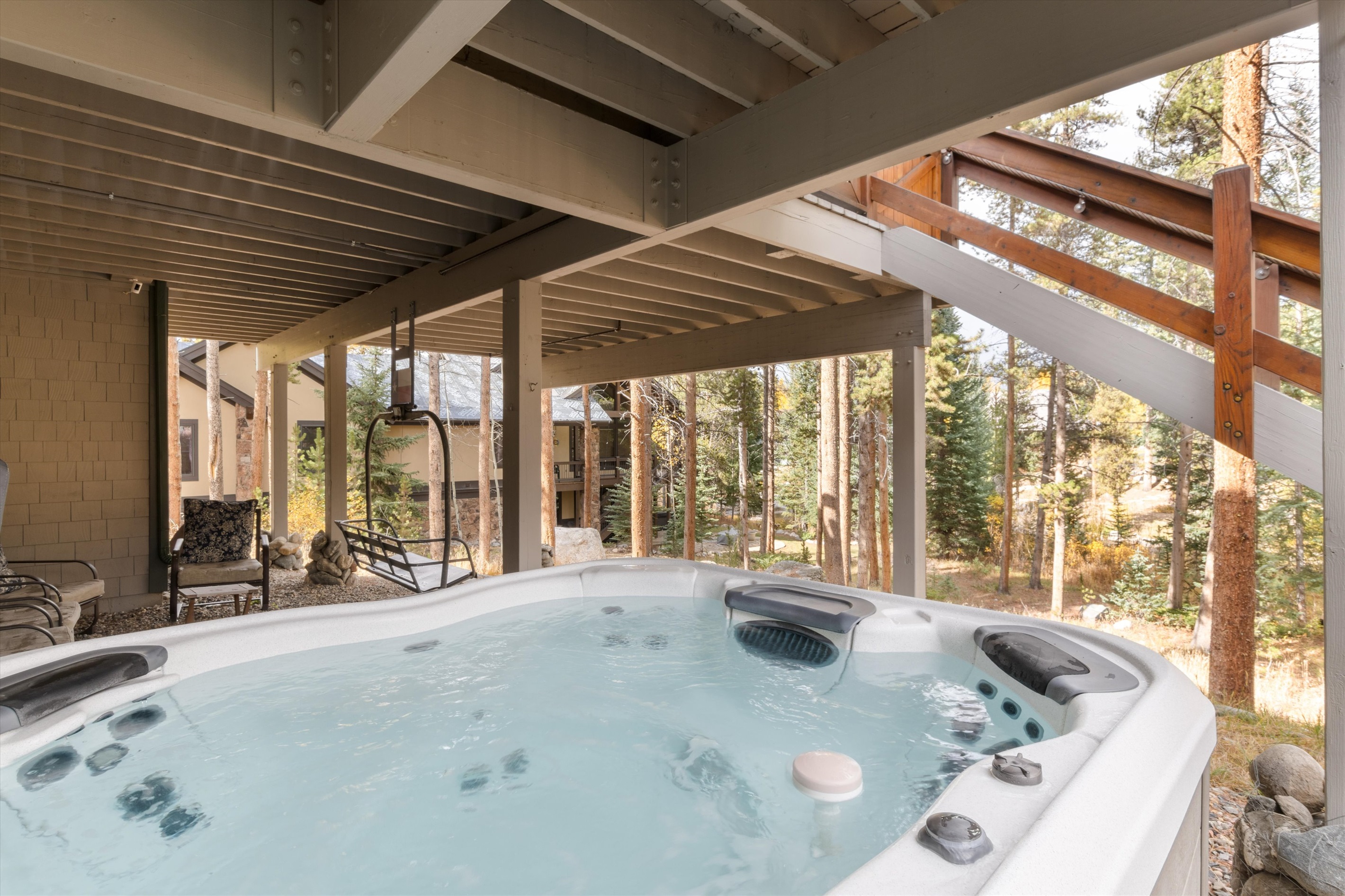 The home is located on Riverwood Drive. It’s just 1 mile from the Quicksilver Super 6 Chairlift and downtown Breckenridge. To get to either, you can walk, or use the bus. In winter, you'll probably want to use the bus, which picks up and drops off about 100 yards from the house, at Trafalgar Drive and Broken Lance Drive. In summer, walking or biking is very doable and fun. Though you're very close to all of the action, the home is located in a quiet cul-de-sac neighborhood. You'll feel a world away from the hustle and bustle of the ski resort and downtown when you relax in the back yard, surrounded by Lodgepole Pines, the Blue River, friends and family. At this home, you get the best of both worlds.